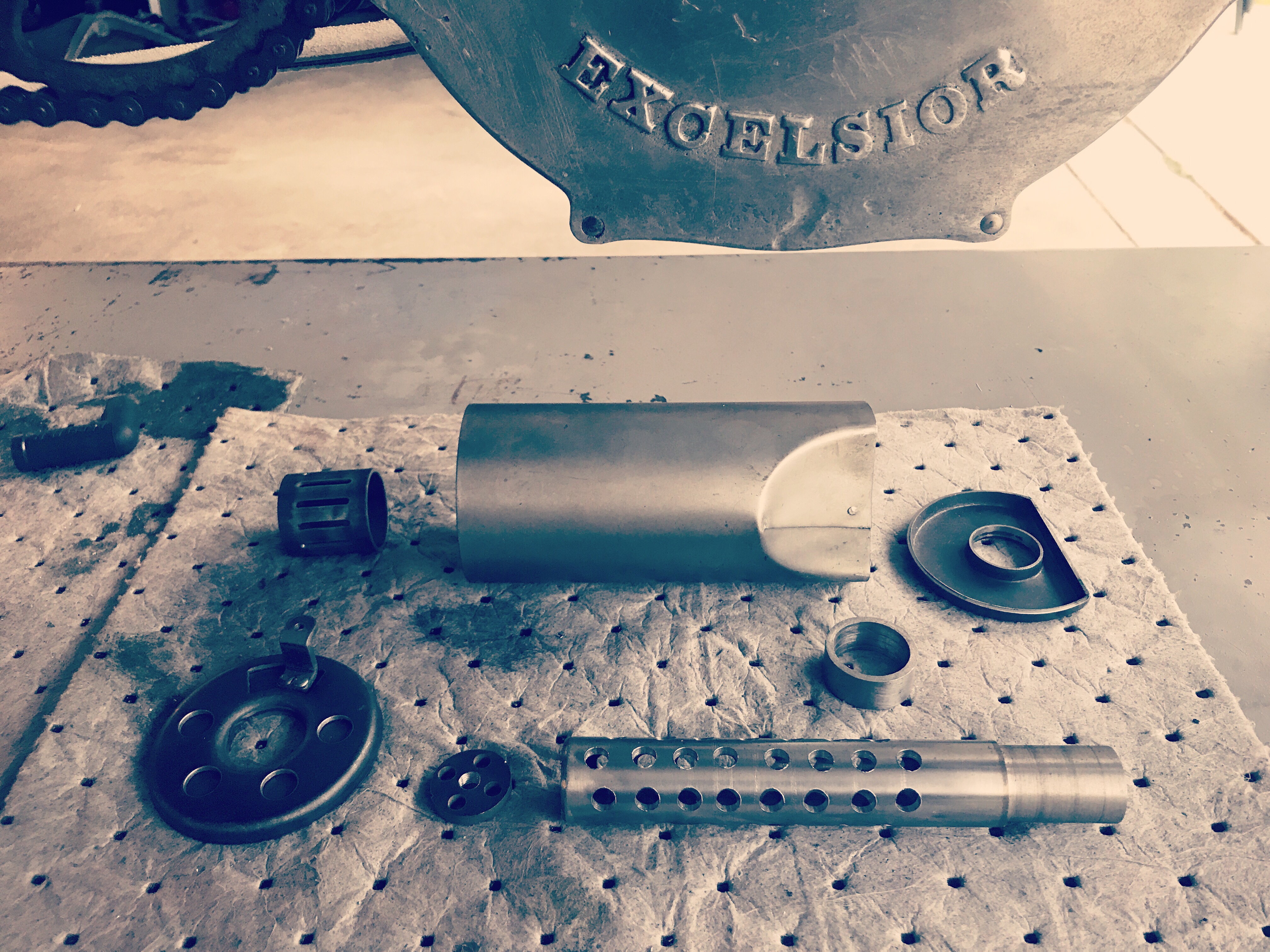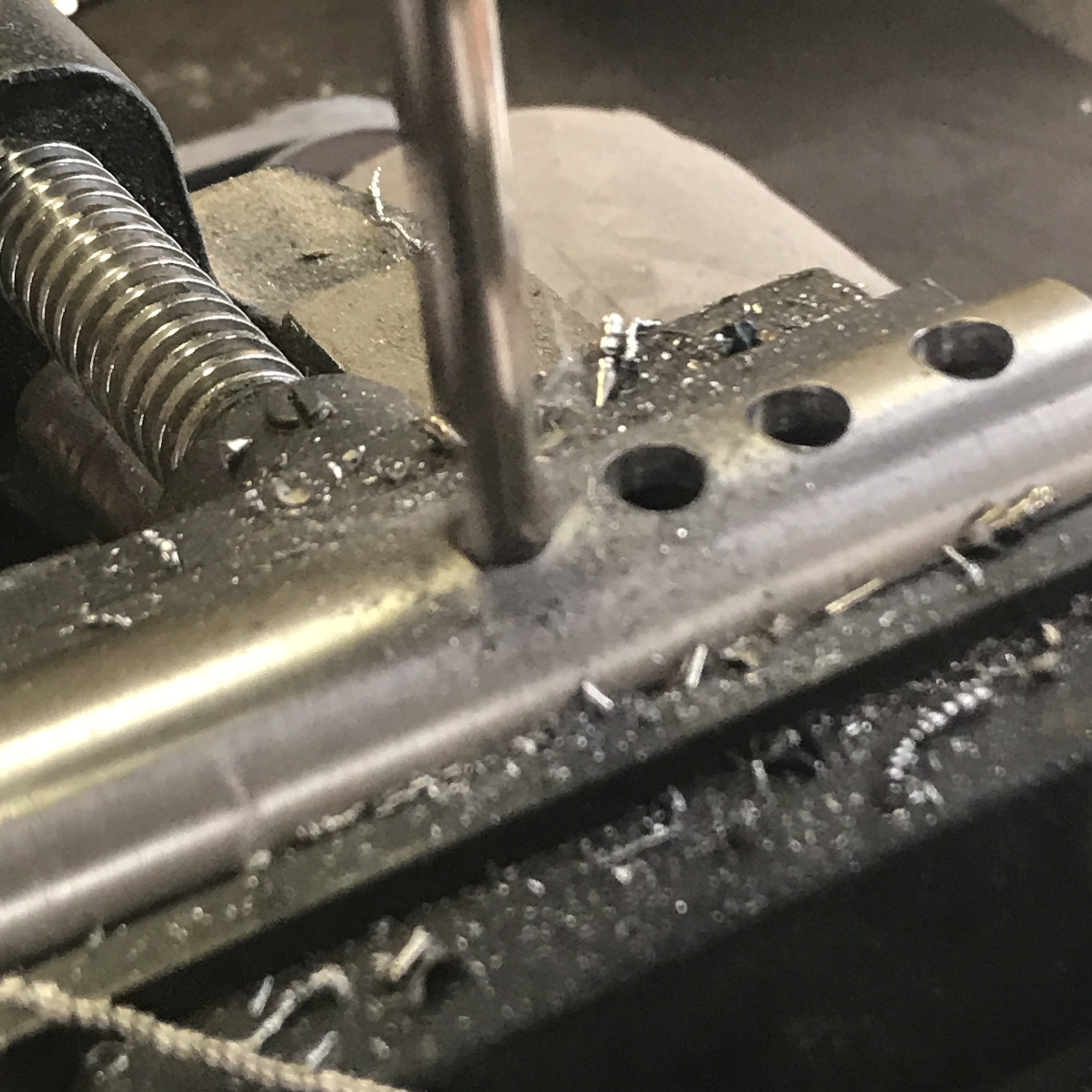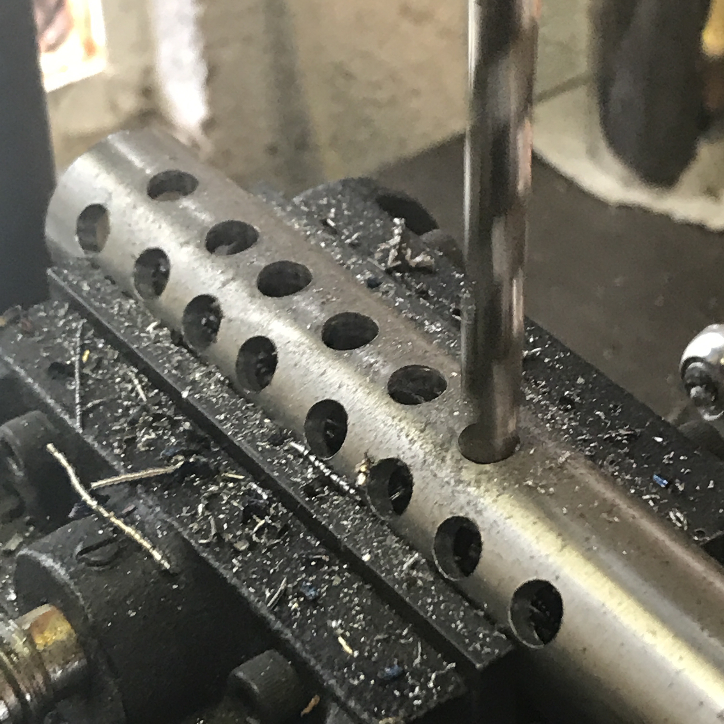 The EX muffler is made up of many pieces. First was to make and drill holes in the main “tube”.