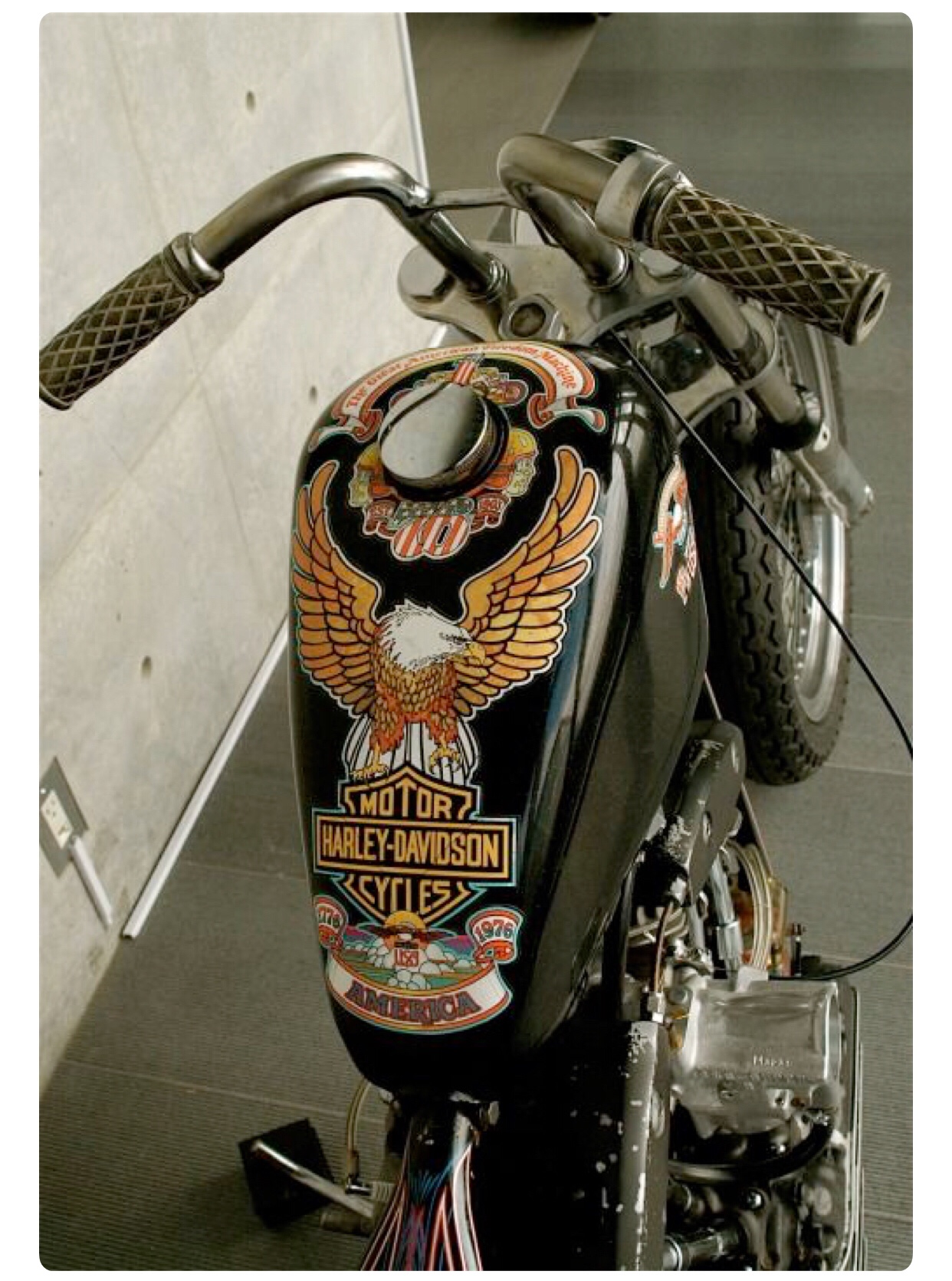 Paul is an accomplished artist who has done considerable work for Harley-Davidson. He created the original eagle over bar & shield design as well as the gas tank graphics for the bicentennial editions in 1976. Here is his website for more info: http://psmithartstudio.com/paul_smith_theeagle.html