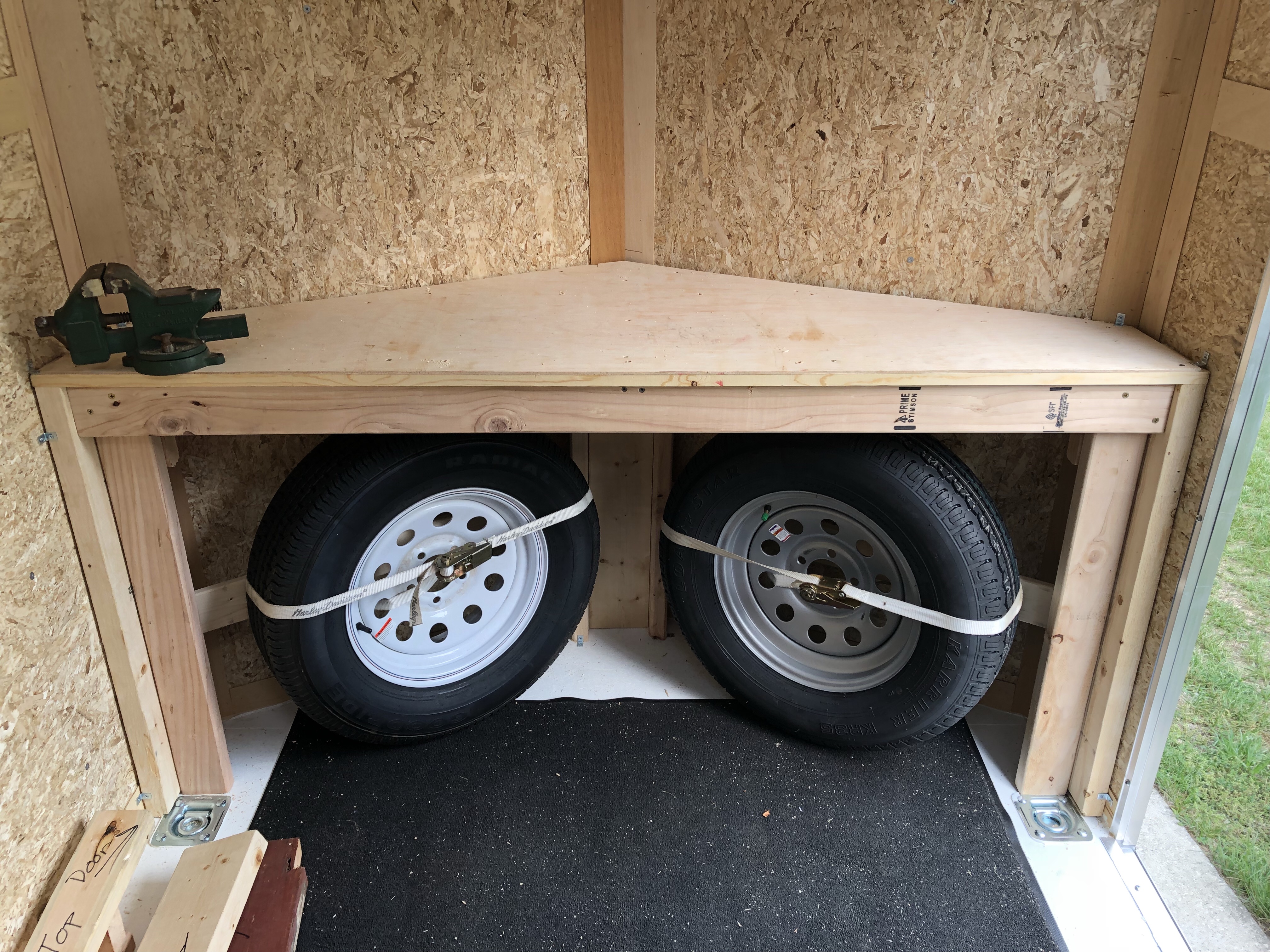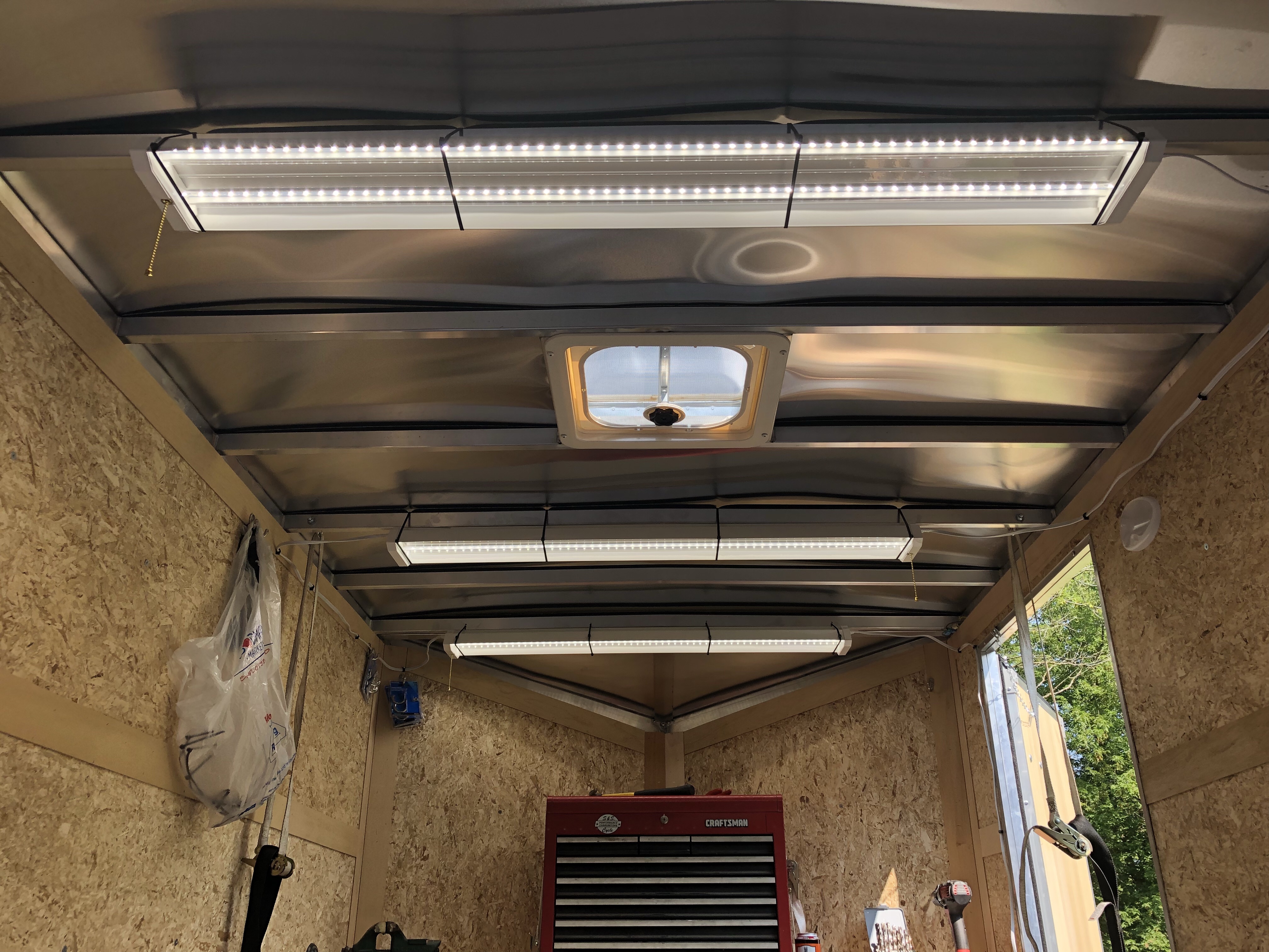 Today was spent getting trailer ready with workbench (thanks Andy for the help!), lighting, and assorted hooks.