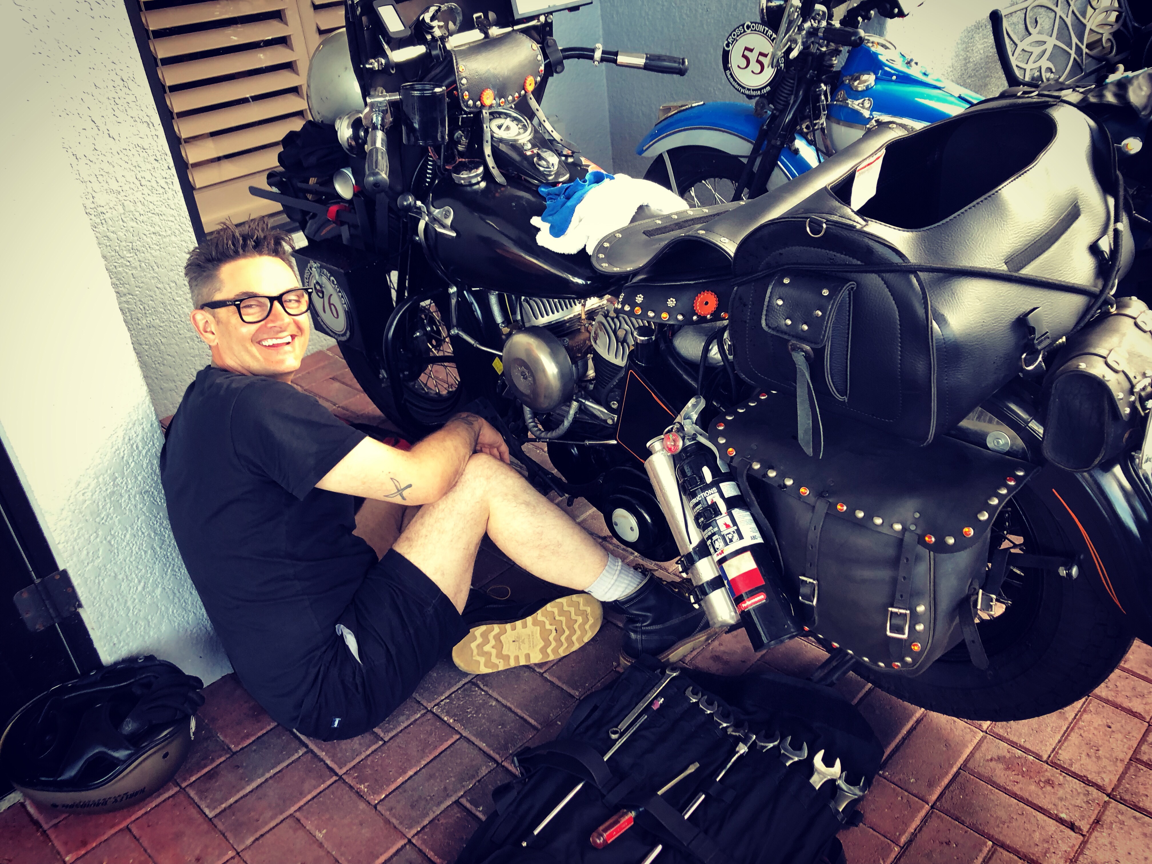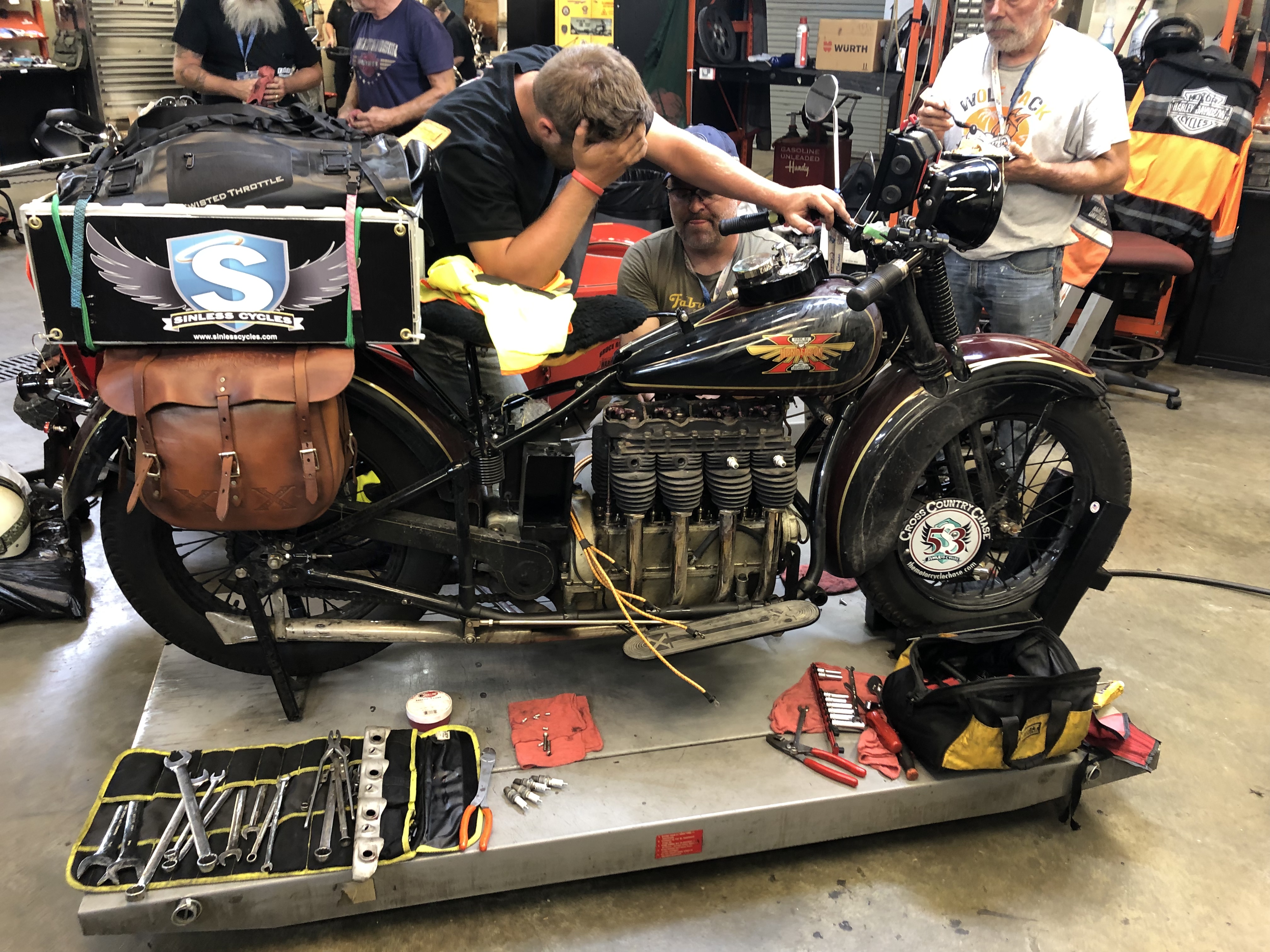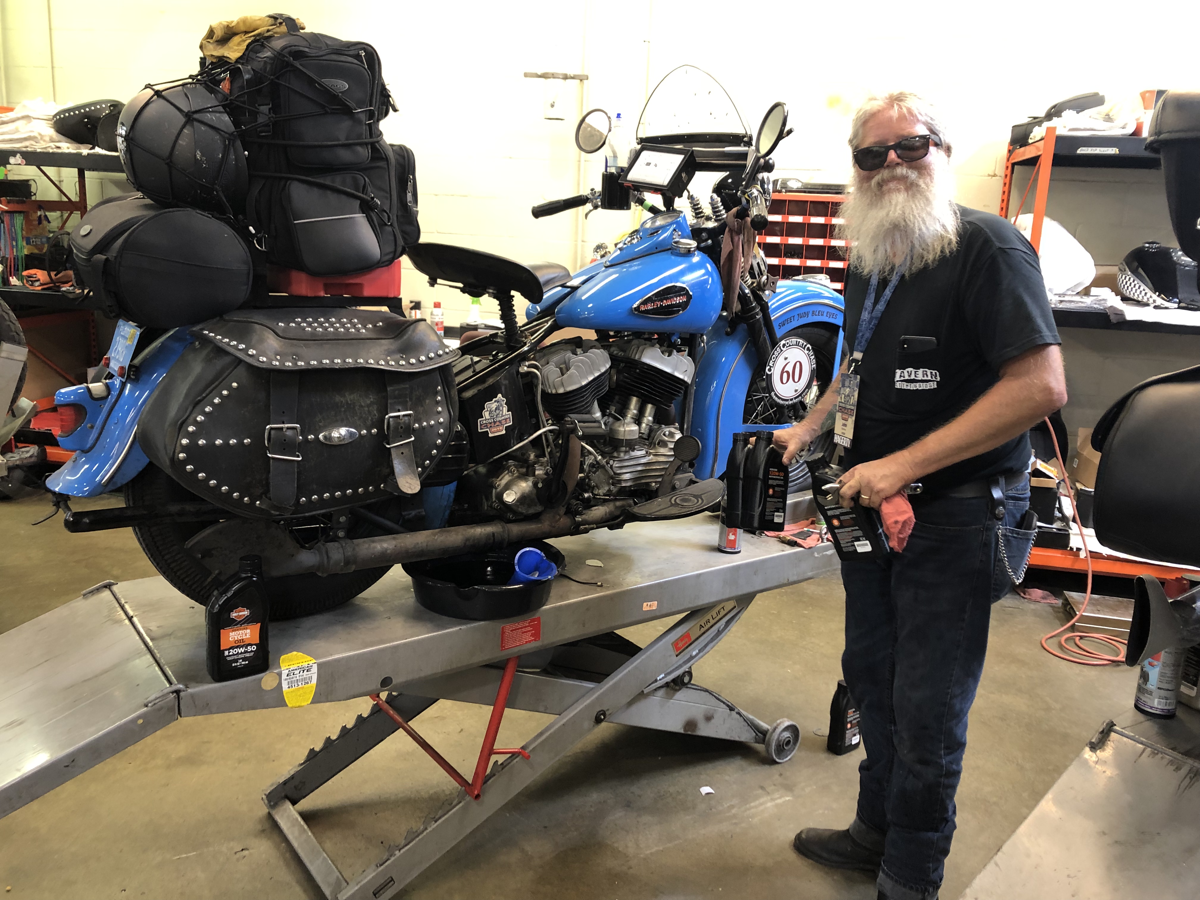 There are two hotels tonight so we were separated for the nightly bike work. I did my preventative maintenance tonight and was glad I did. Found a lot of loose fasteners.