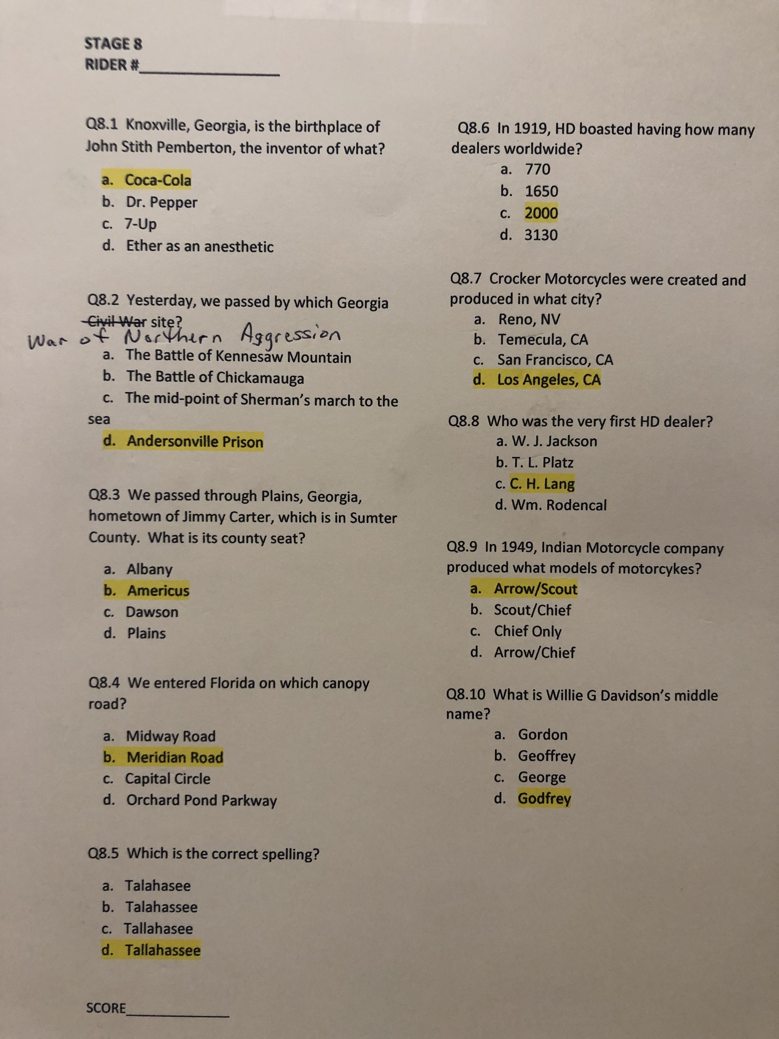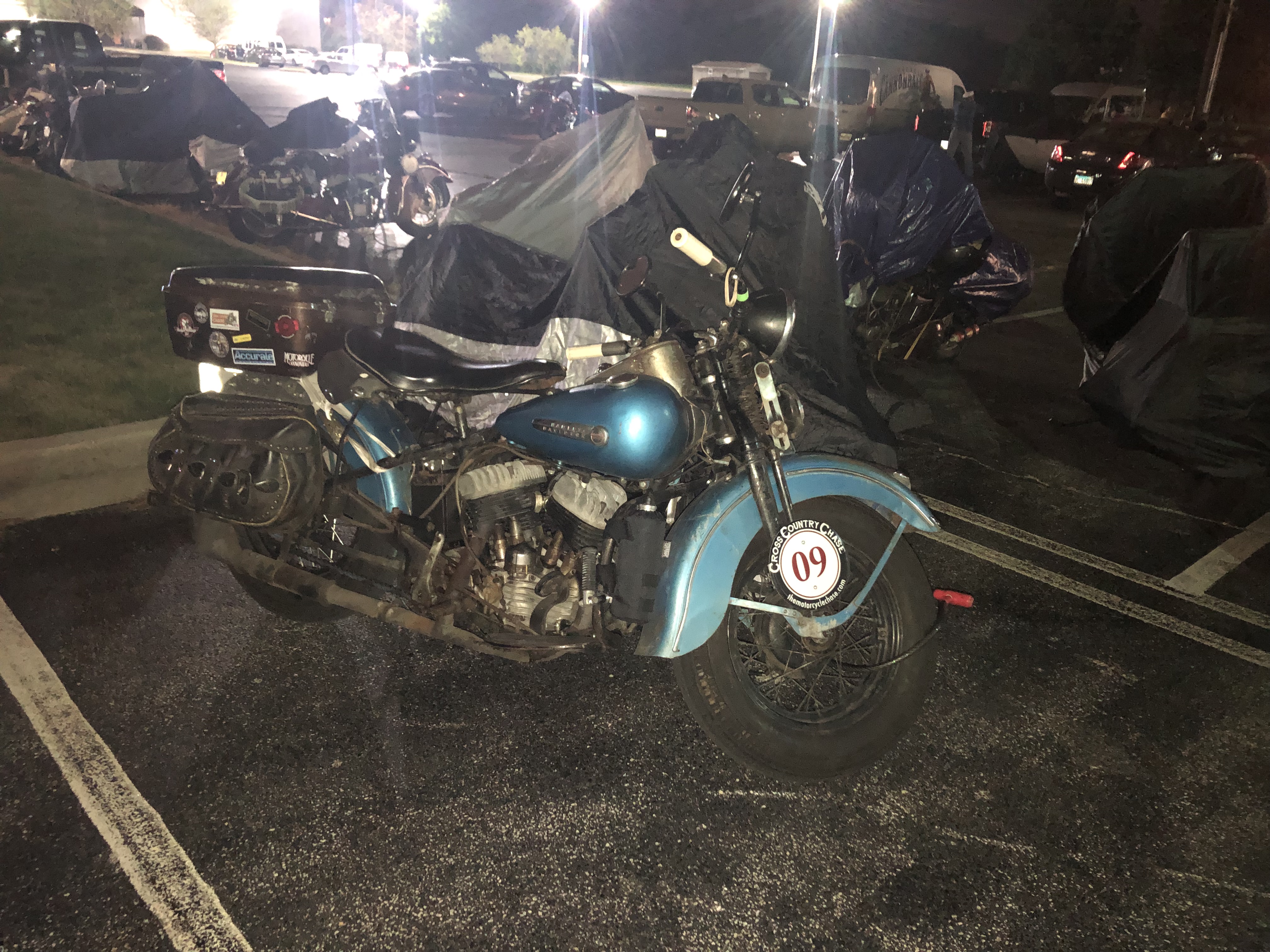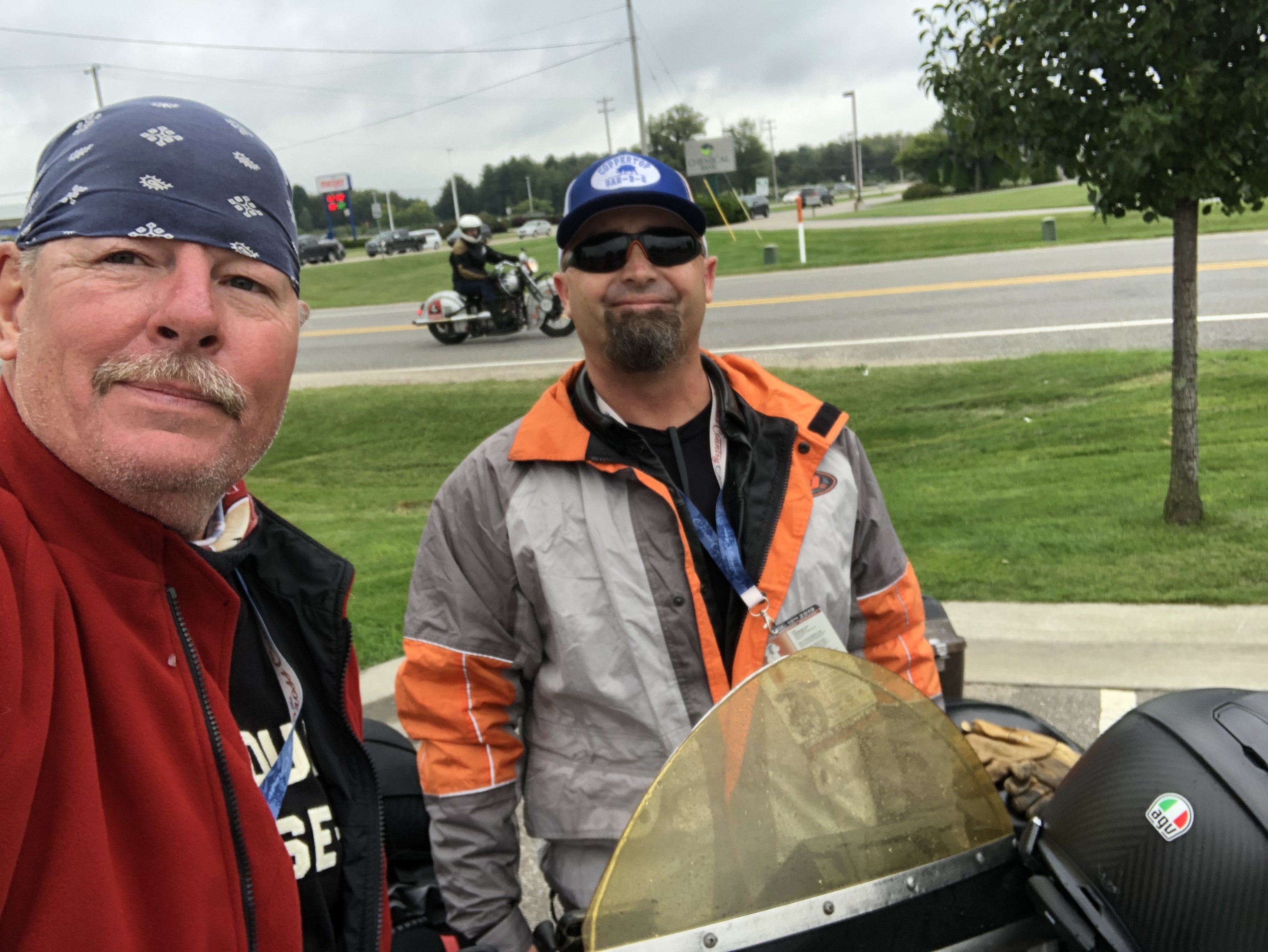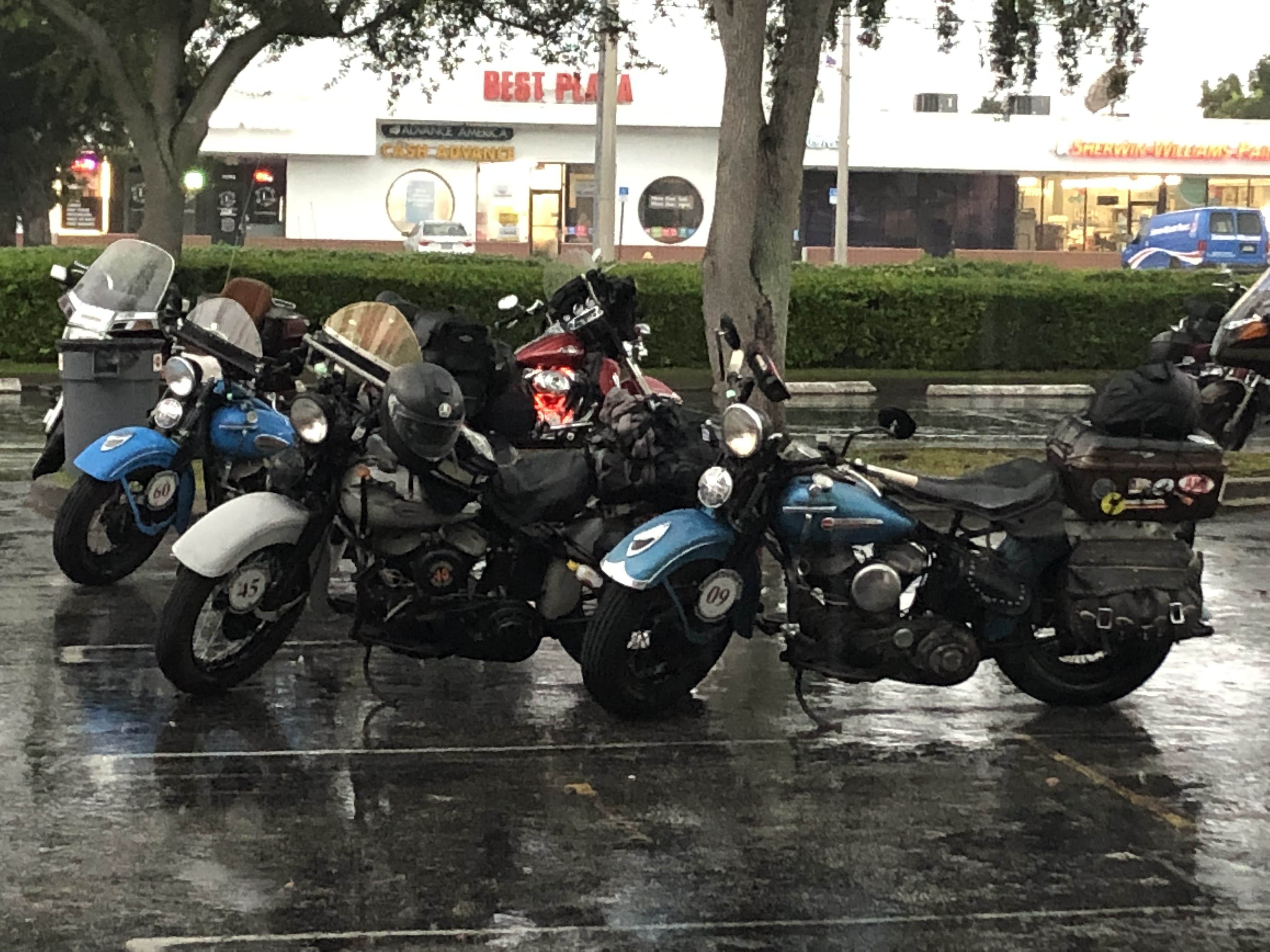 We left in 58 degree rain. I rode with Rodney Sterling and Mike Bruso. Great team. Slow and steady. We stopped a few times for Rodney’s clutch issues and my luggage rack and tailight problems. Nothing was a show stopper so we kept rolling!! Helping each other as we accumulated the miles. The rain haunted us the entire 276 miles!