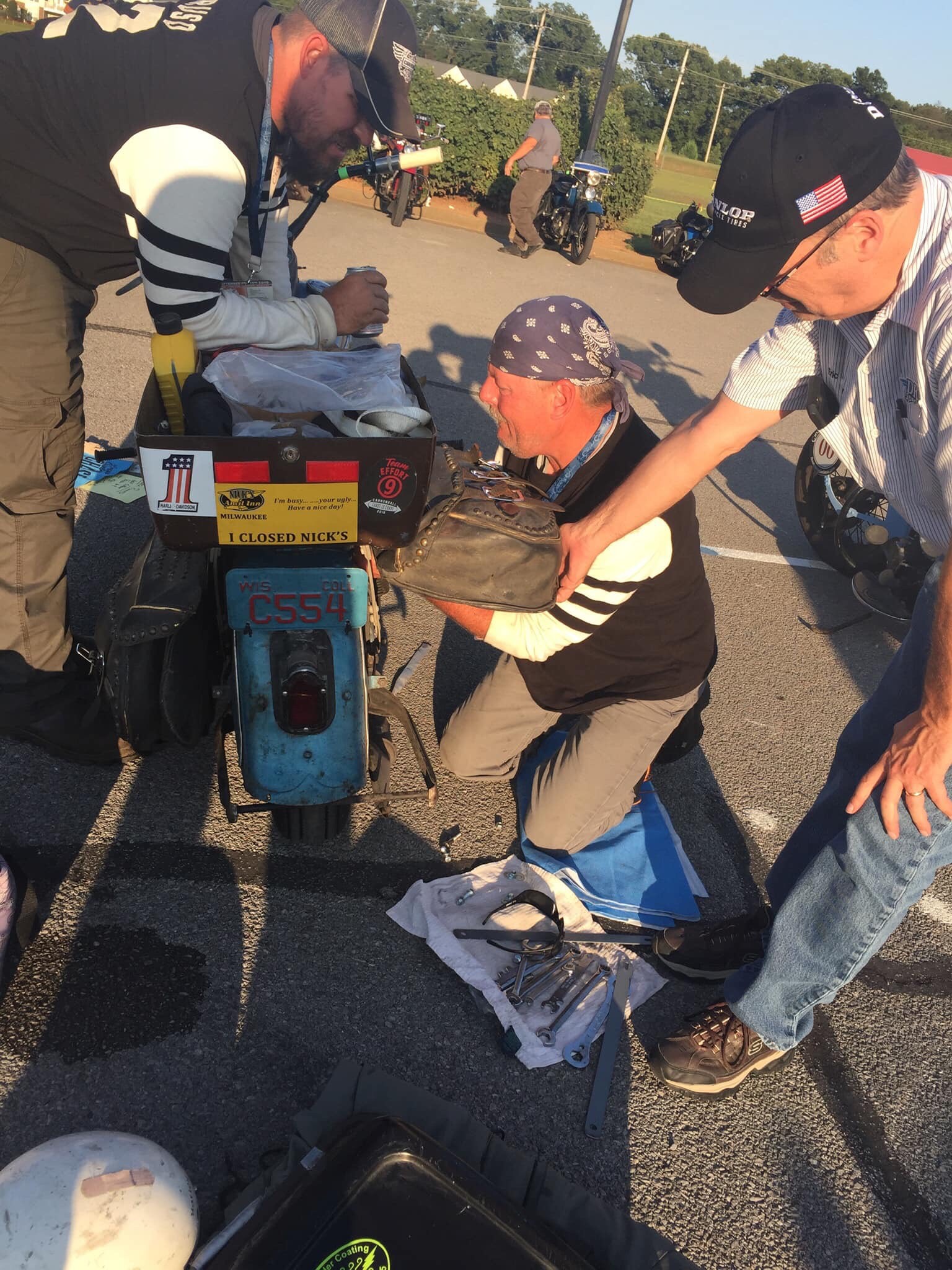 Bike is running great! It will be good to see a lot of friends tomorrow in Manitowoc and Milwaukee. Around 7:20 the sweep truck came in with six bikes. Out of respect for the riders I will NOT post the pictures of the trailer with their bikes. Very emotional to be on the trailer as I know from my Cannonball event.