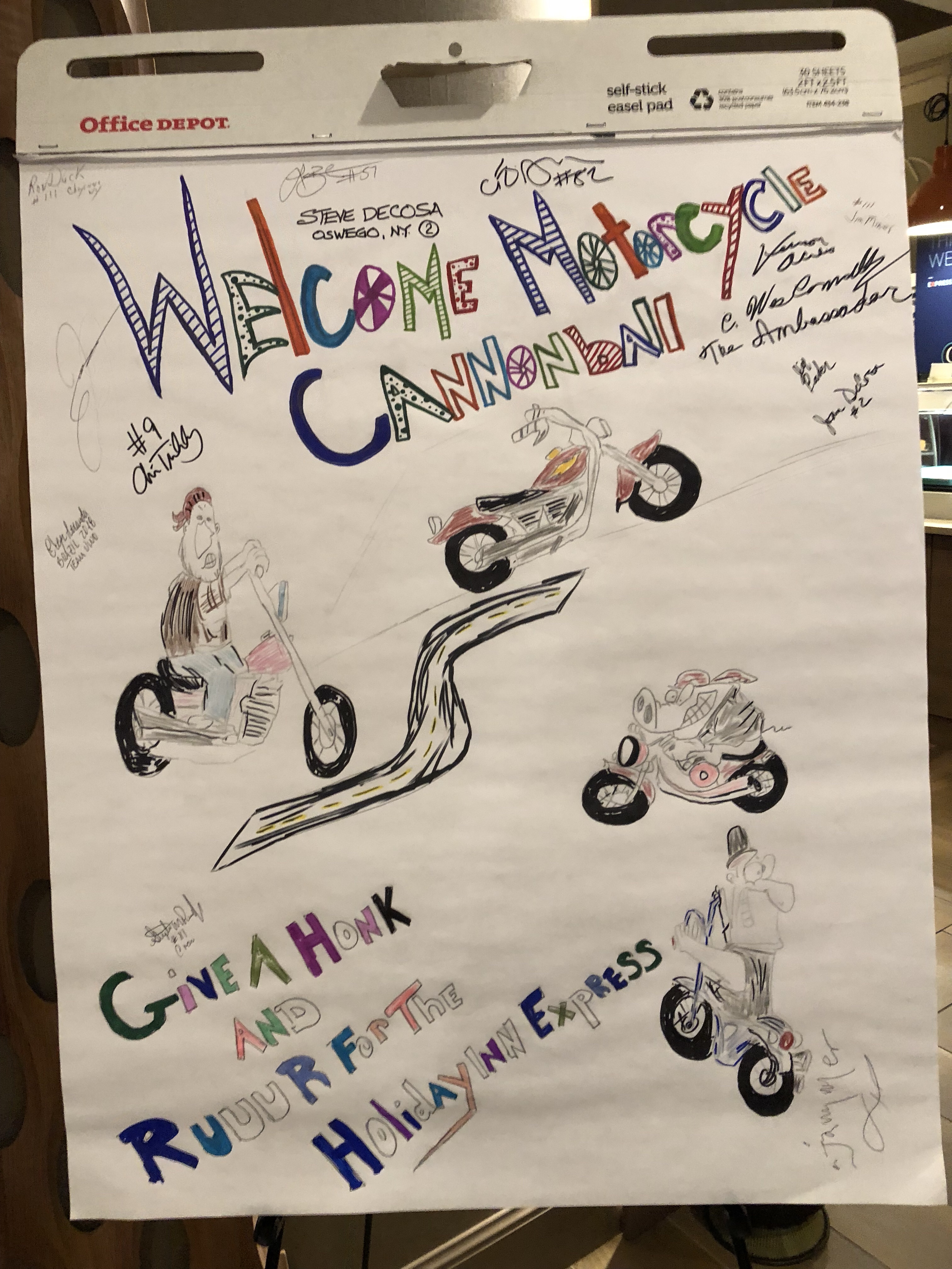A great day overall. Grueling to say the least. Got all miles so I am still #1. Unreal. Here’s a sign in hotel.