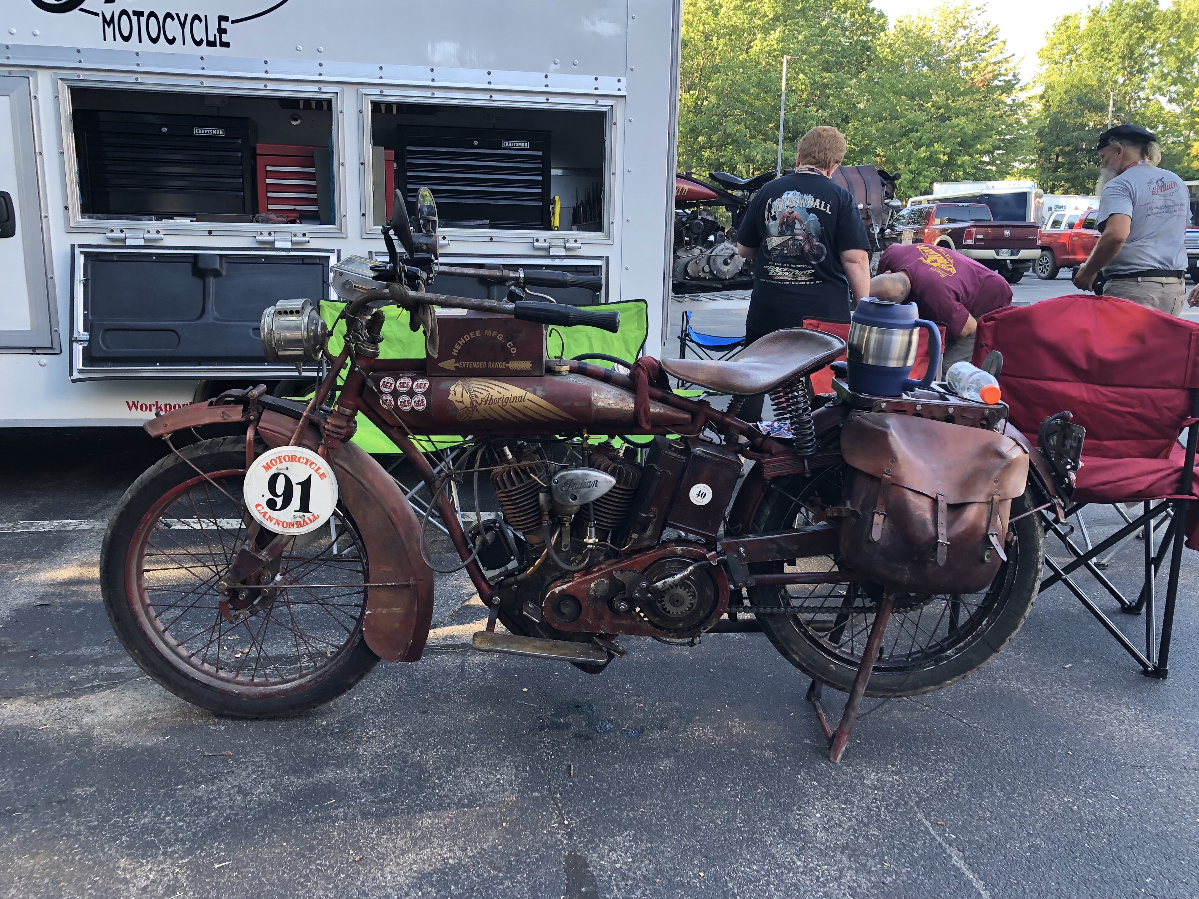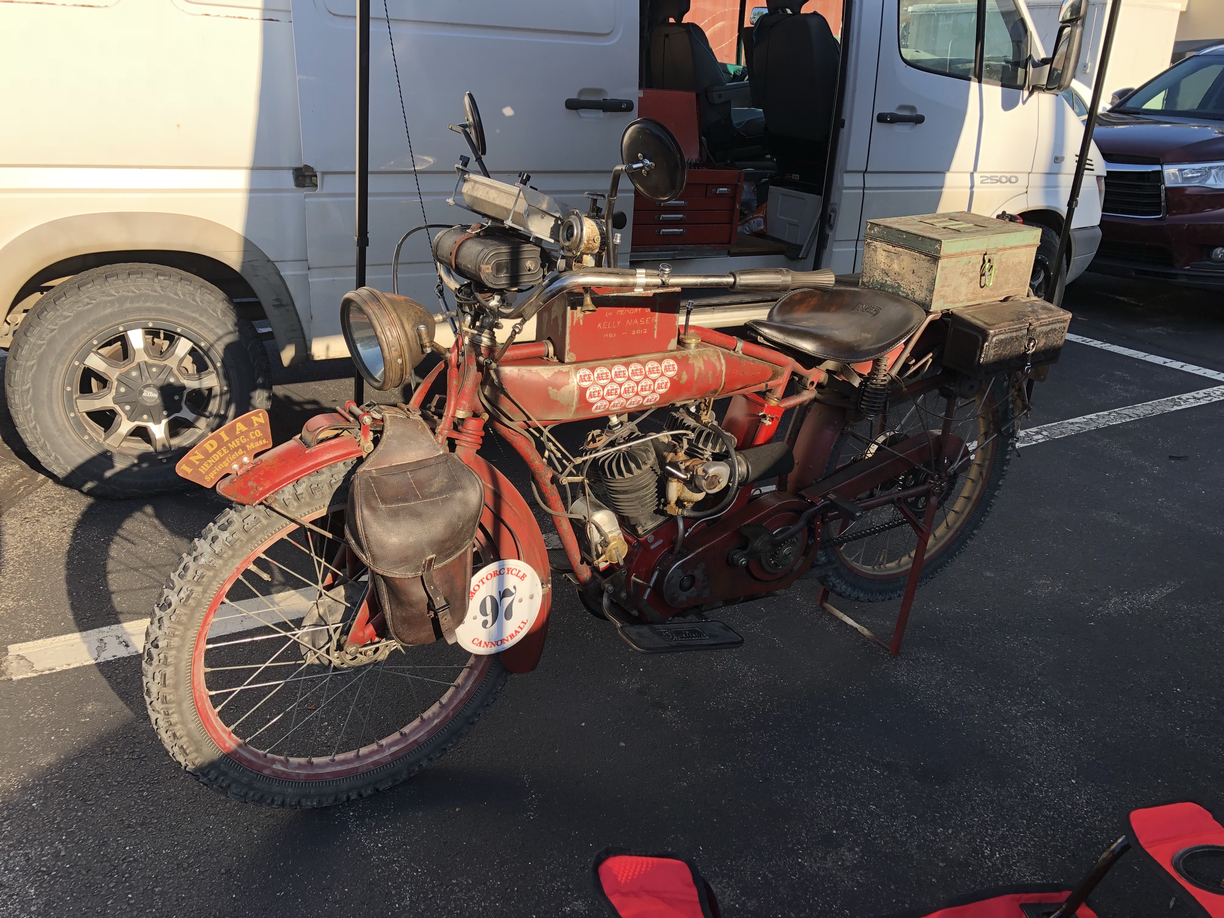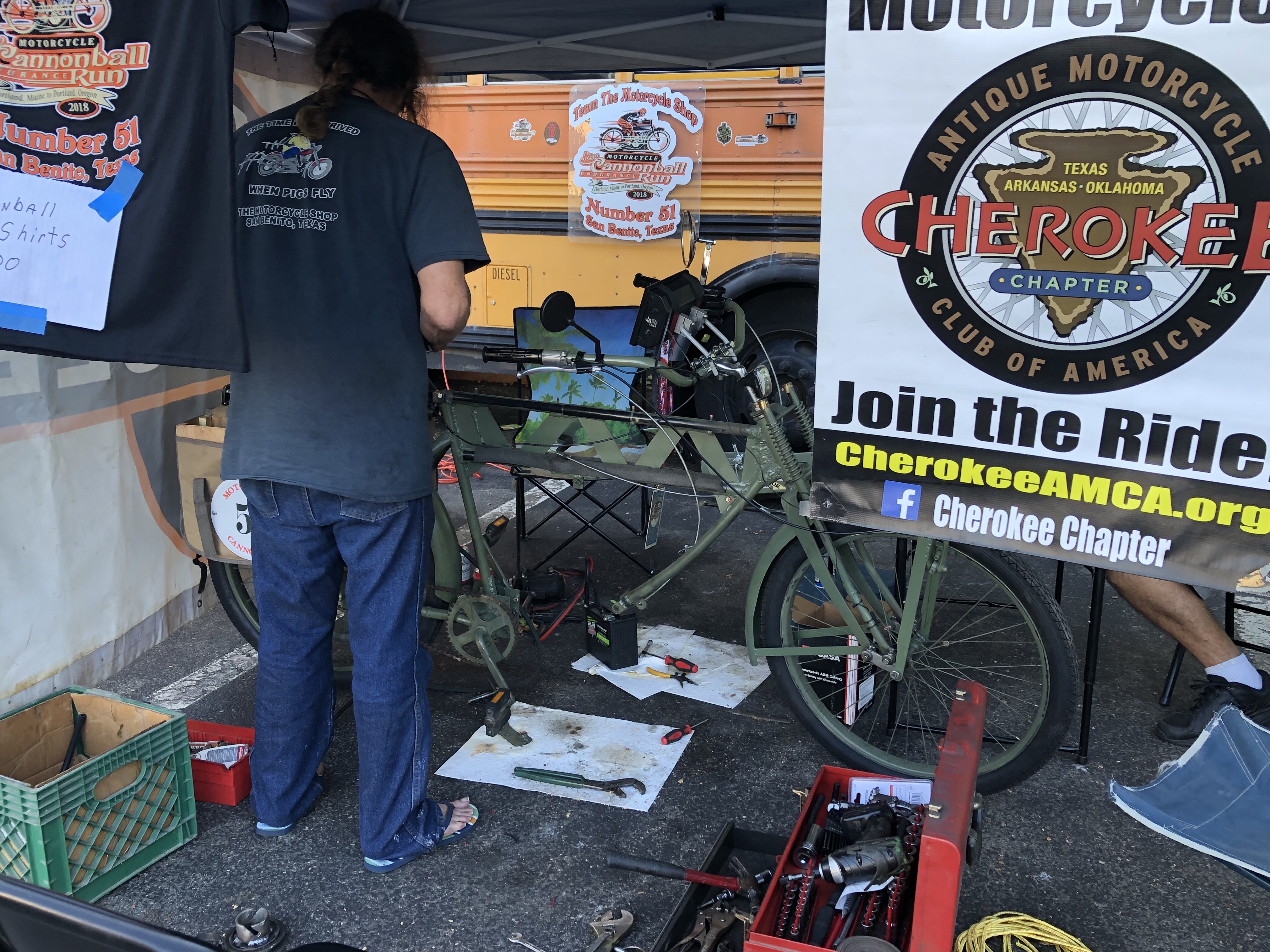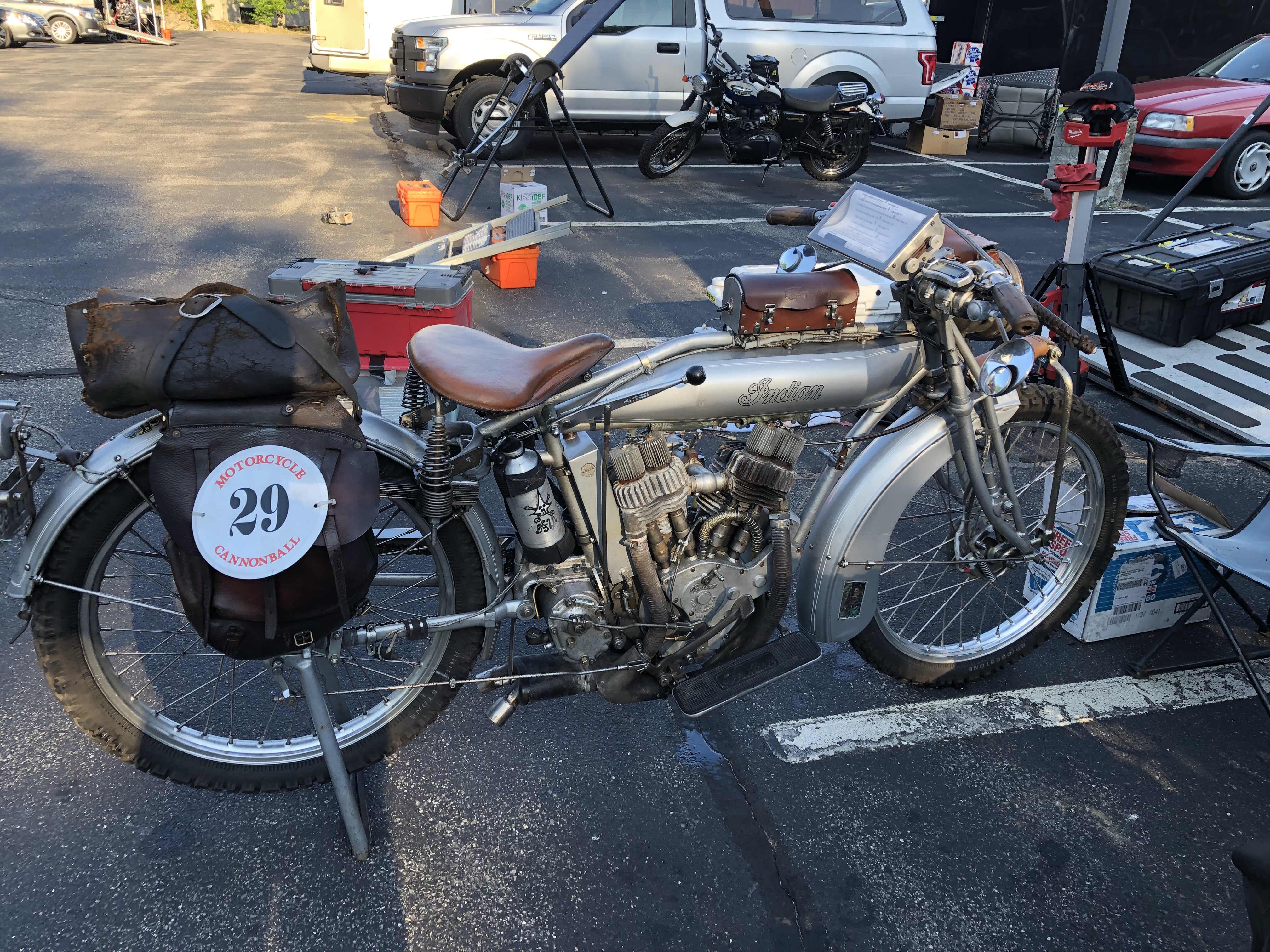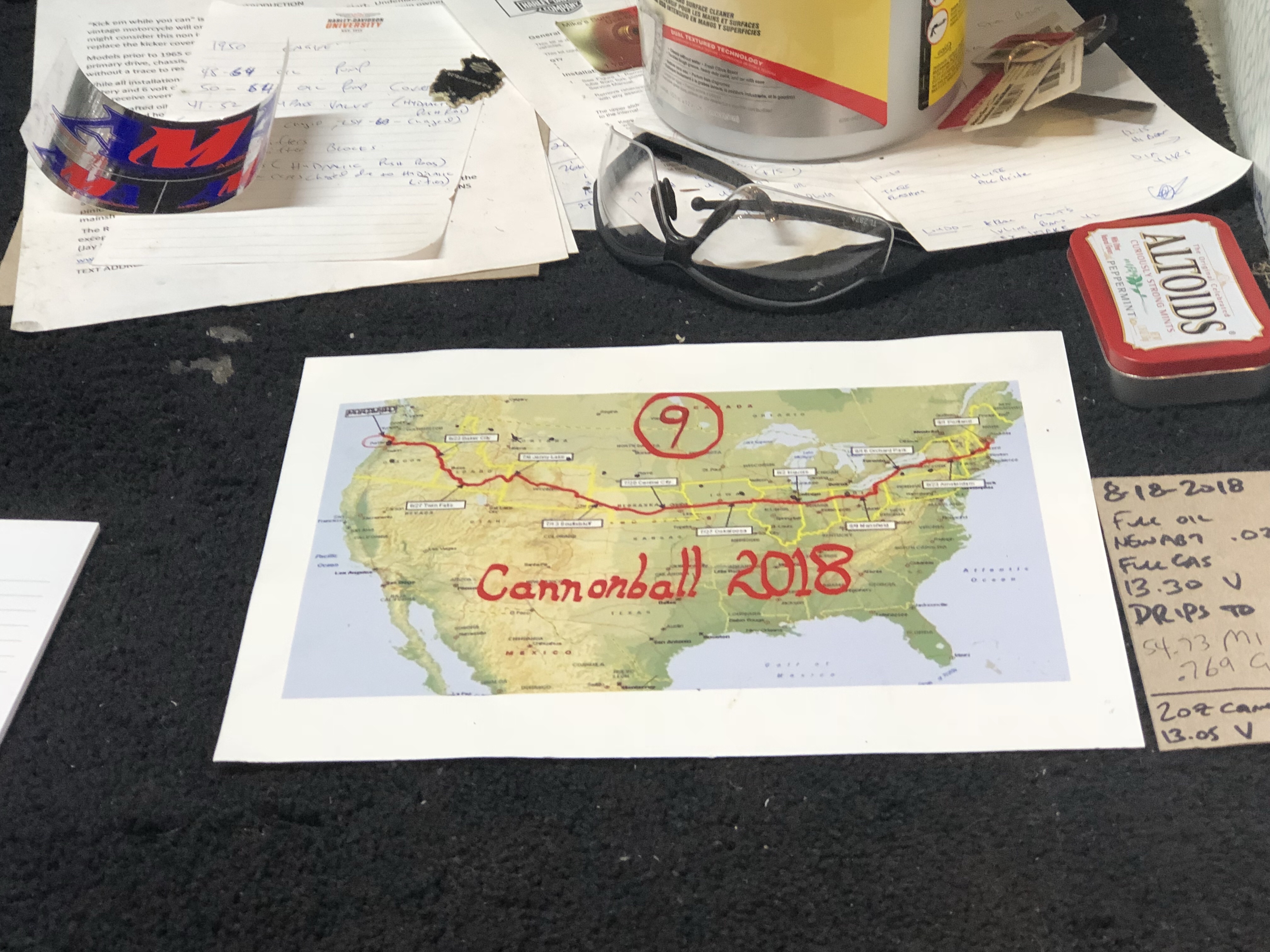 This is the Cannonball. Expect the unexpected. After a perfect 19 mile practice ride (to better understand the paper scroll route map) I was one block away when the rear brakes locked up solid! Thank God I kept the bike upright. We got the bike back to our tent and pulled everything apart. Here’s what we found.