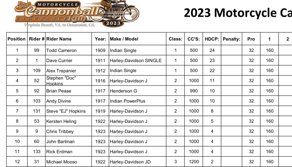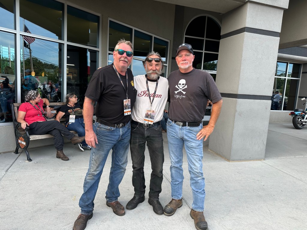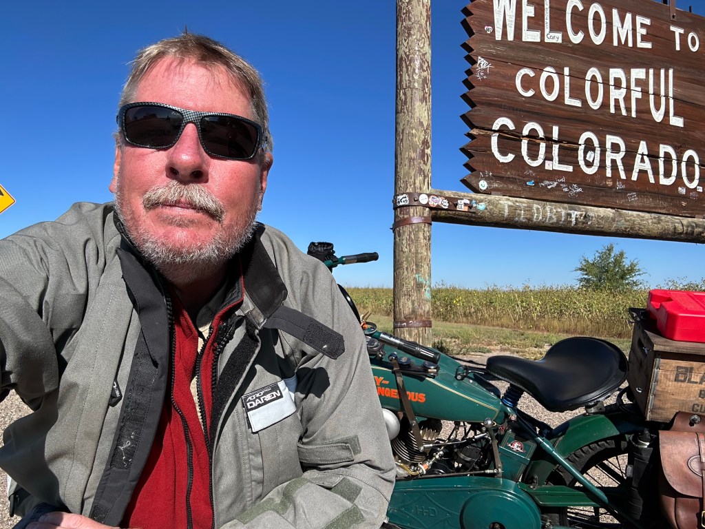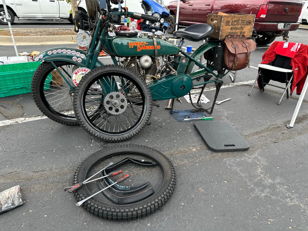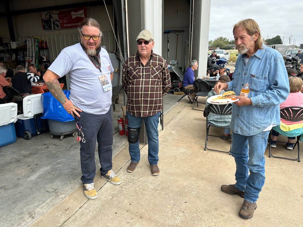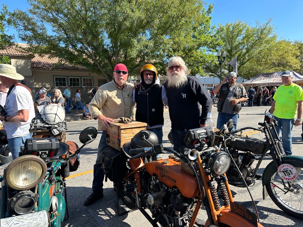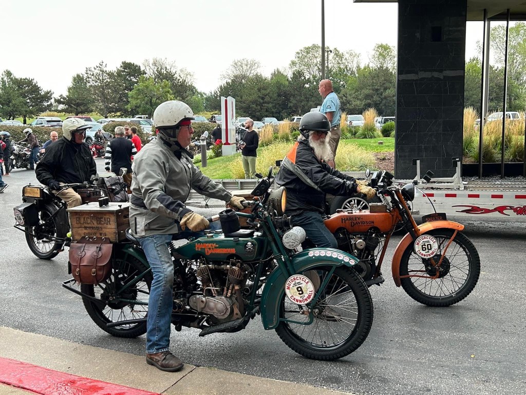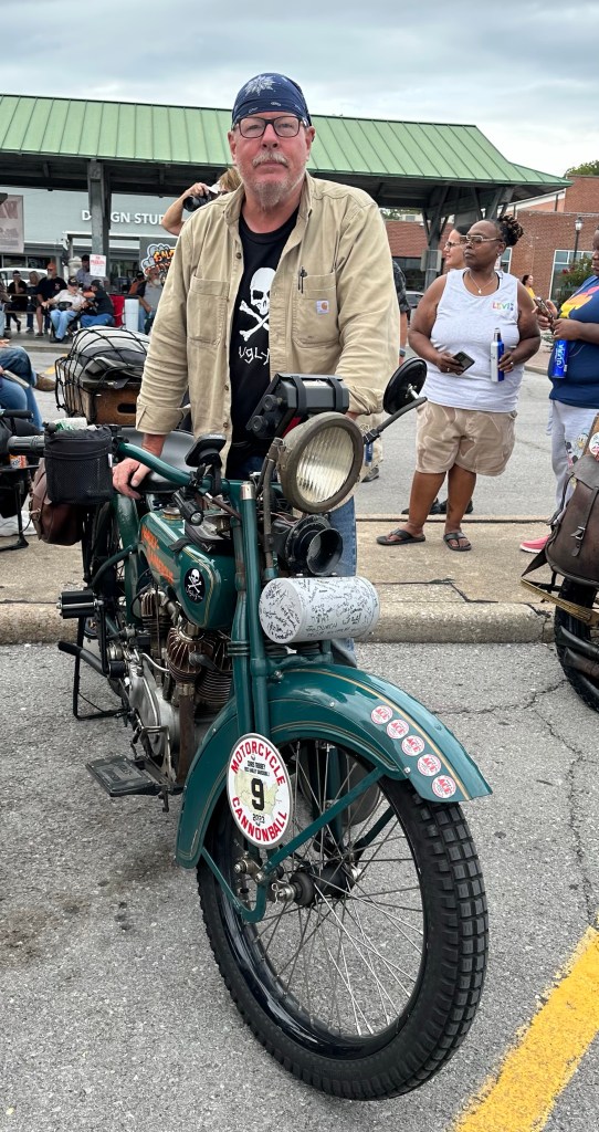 Good morning! Did not get breakfast at the hotel. I was rushed to fix a gas line leak! So the first gas stop I had a little breakfast. Here are two of the official photographers on the ride. They are really capturing some great video and images. Gives you an idea of where we were today. At the Twisted Oz museum for dinner. It was awesome to see Kelly. Much appreciated. Spotted the world famous Roger Green sporting the best USA made heavyweight pocket t-shirt. Grim Sweeper trailer. One of the bikes on the Grim Sweeper. Knowing this guy he will be back in the race tomorrow. With Dave. The overall winner of the 2021 Cannonball. He is riding a 1911 Harley with an atmospheric intake valve. Just like the 1911 Excelsior I rode in the 2018 Cannonball. Got “all the miles”! 280 today. Team BOT (Bartman, Olson, and Tribbey) all finished again today.