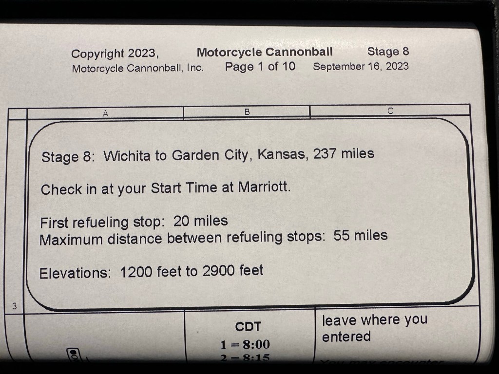 Tomorrow will be 270 miles to Augusta, KS. And we have a day off as it is the half way point. Thanks for following along. Over and out.