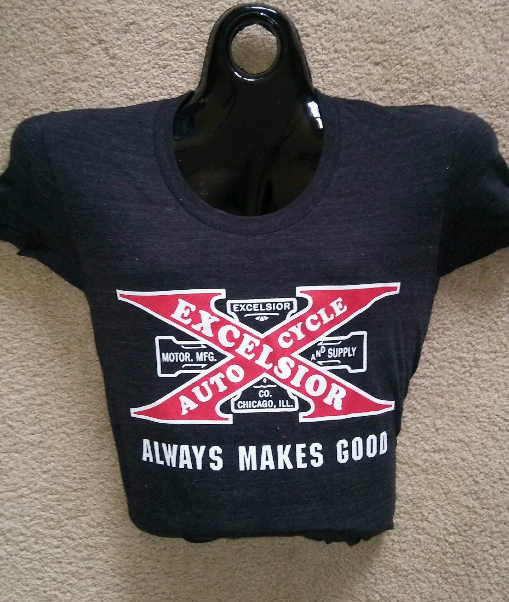 Ladies are a scoop neck design, 50/50 fabric mix. USA made. $28
