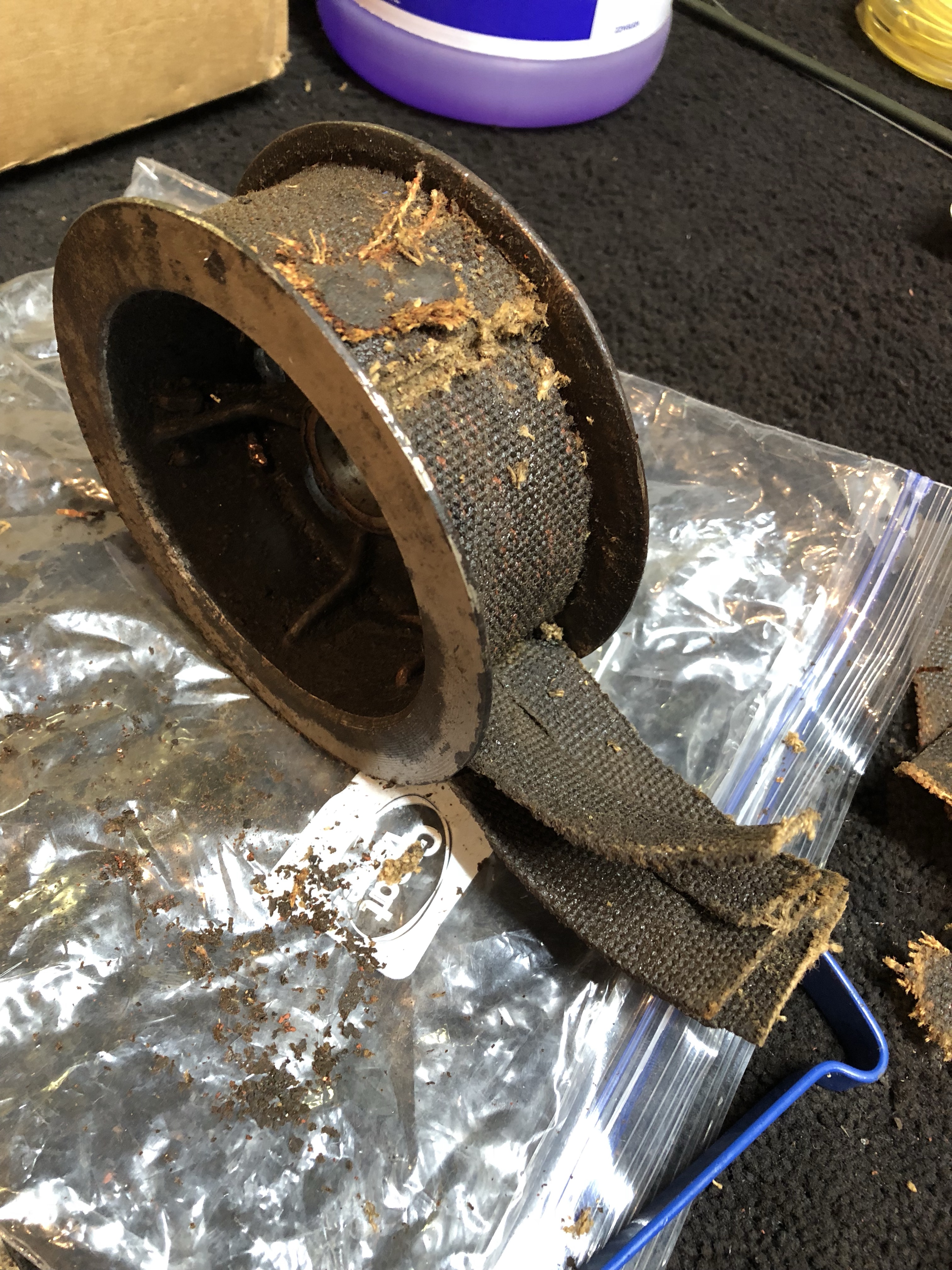 Time to work on the spare engine pulley. First to remove the fabric lagging.