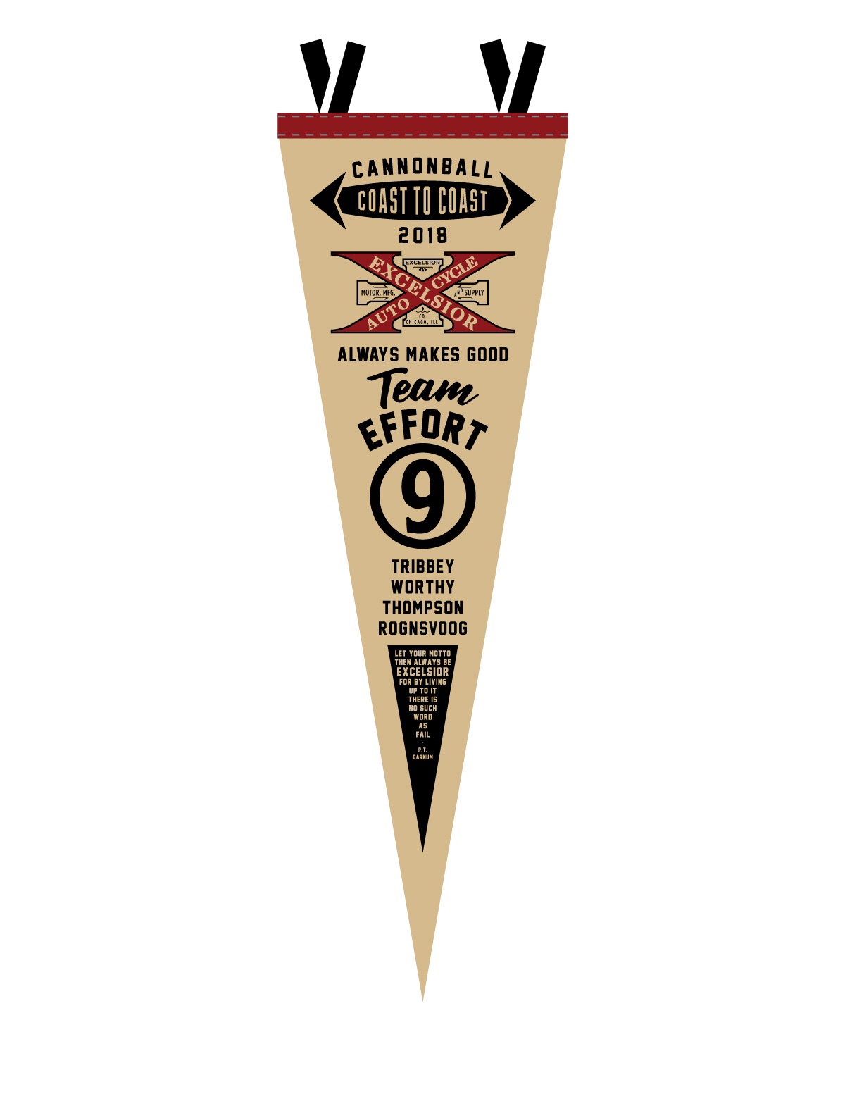 Good day folks! I am proud to unveil the banner for my Cannonball team effort. These are USA made, and measure 9″ X 26″. Material is wool and image is silk screened. These make great items to hang in your garage or gifts for the motorcycle enthusiast. I am selling these as a way to raise funds for the September 2018 event. Price is $20 plus shipping.