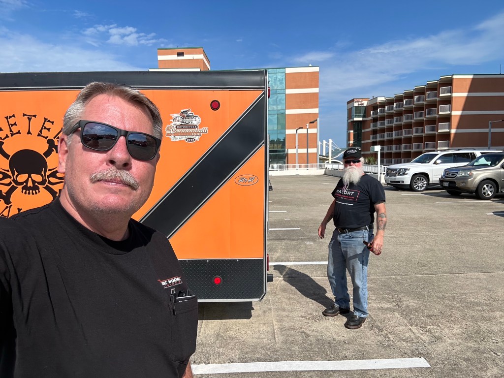 We loaded up everything for me (#9) and John Bartman (#60) this morning at Skeeters Saloon. On the road at 9:15am.
