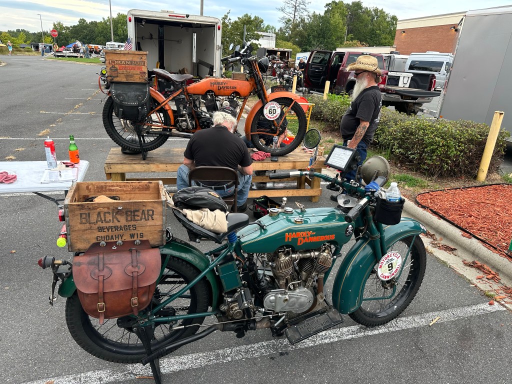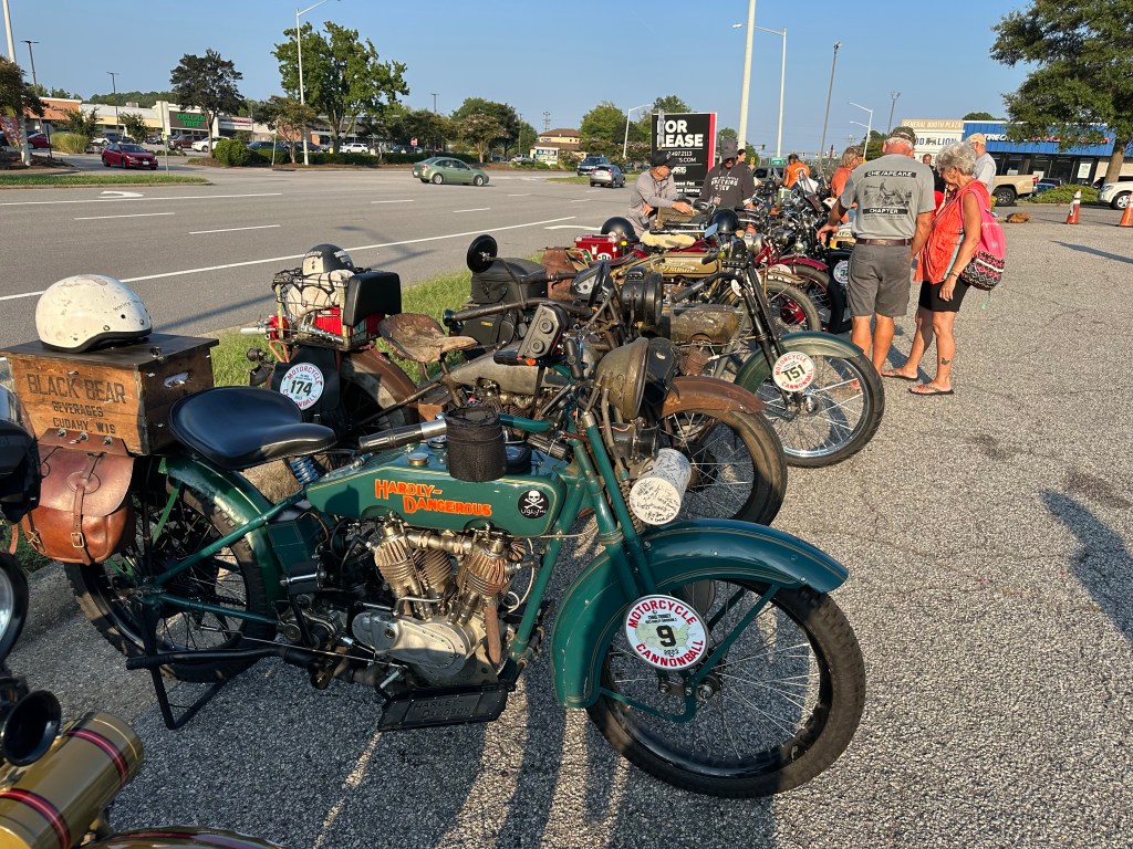 Tomorrow will be an 8:30 departure to Virginia Beach to meet up with all these old bike fanatics!