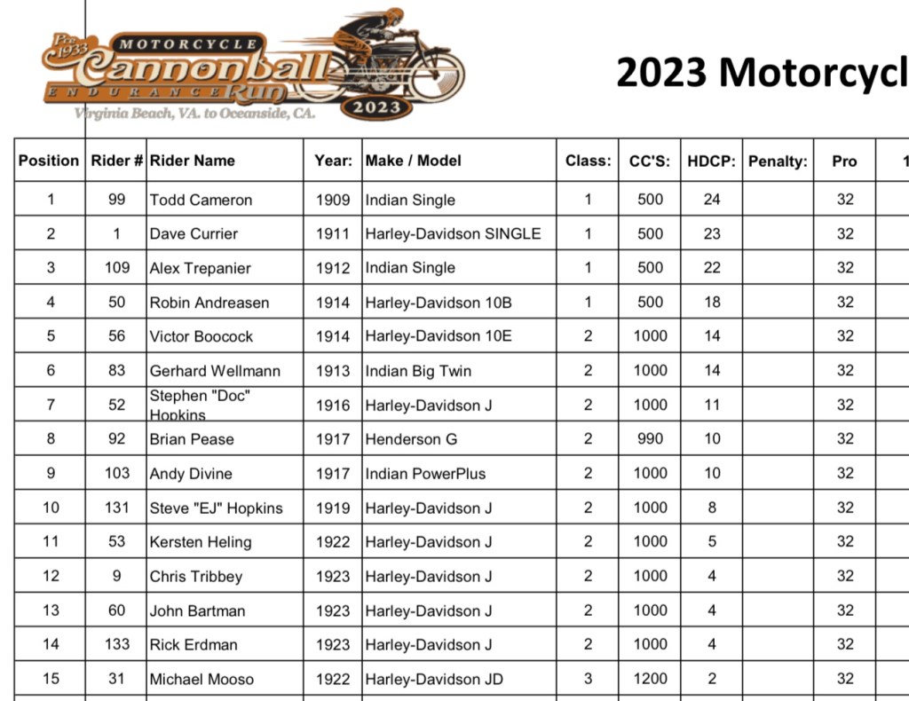 We lined all the bikes up on the fishing pier for a couple hours. Then the prologue ride. Made all the miles. Perfect score so far.