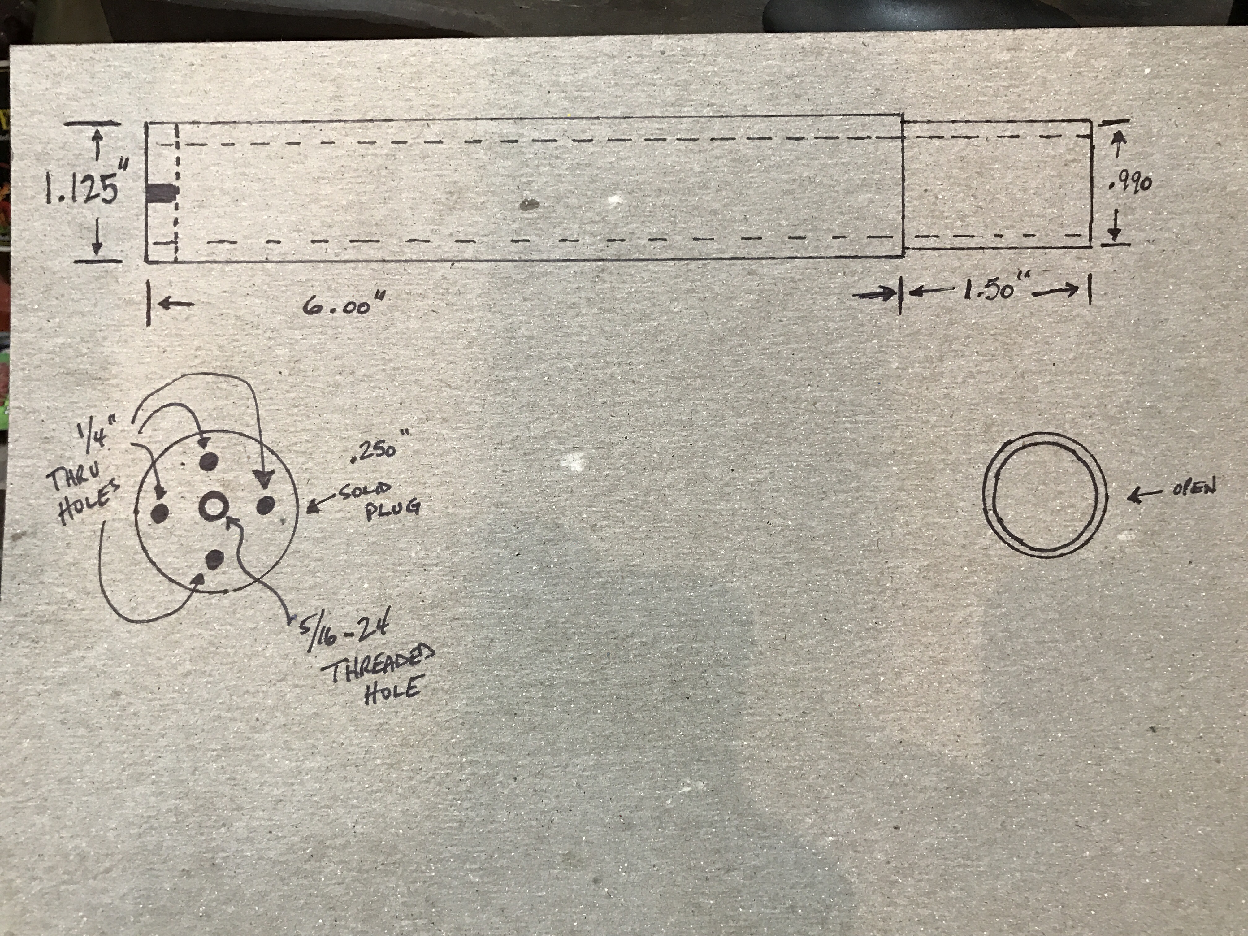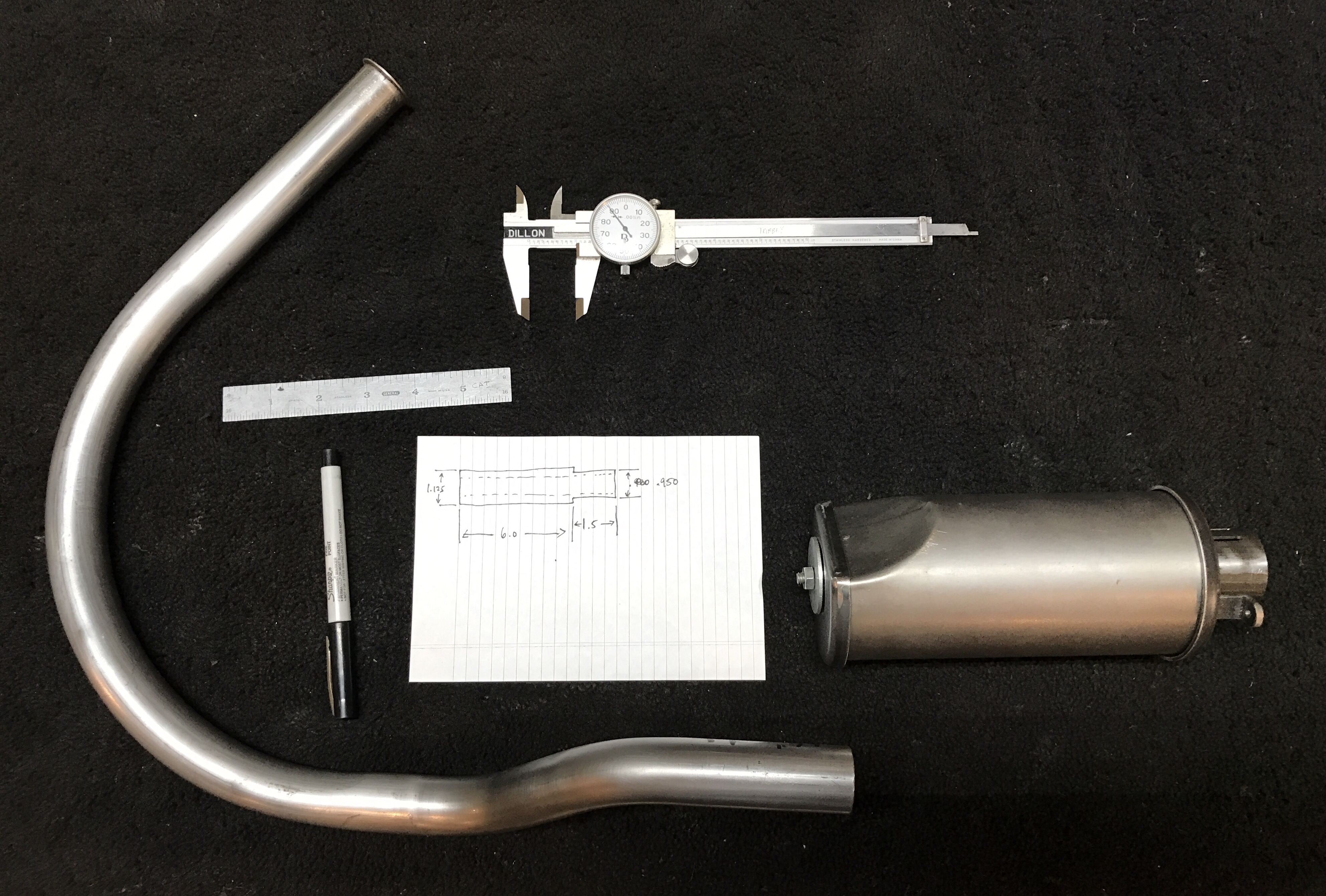 Working on the exhaust. Need to make a piece that extends from the exhaust pipe through the muffler. The end plug on this extension is then bolted on through the rear fender.