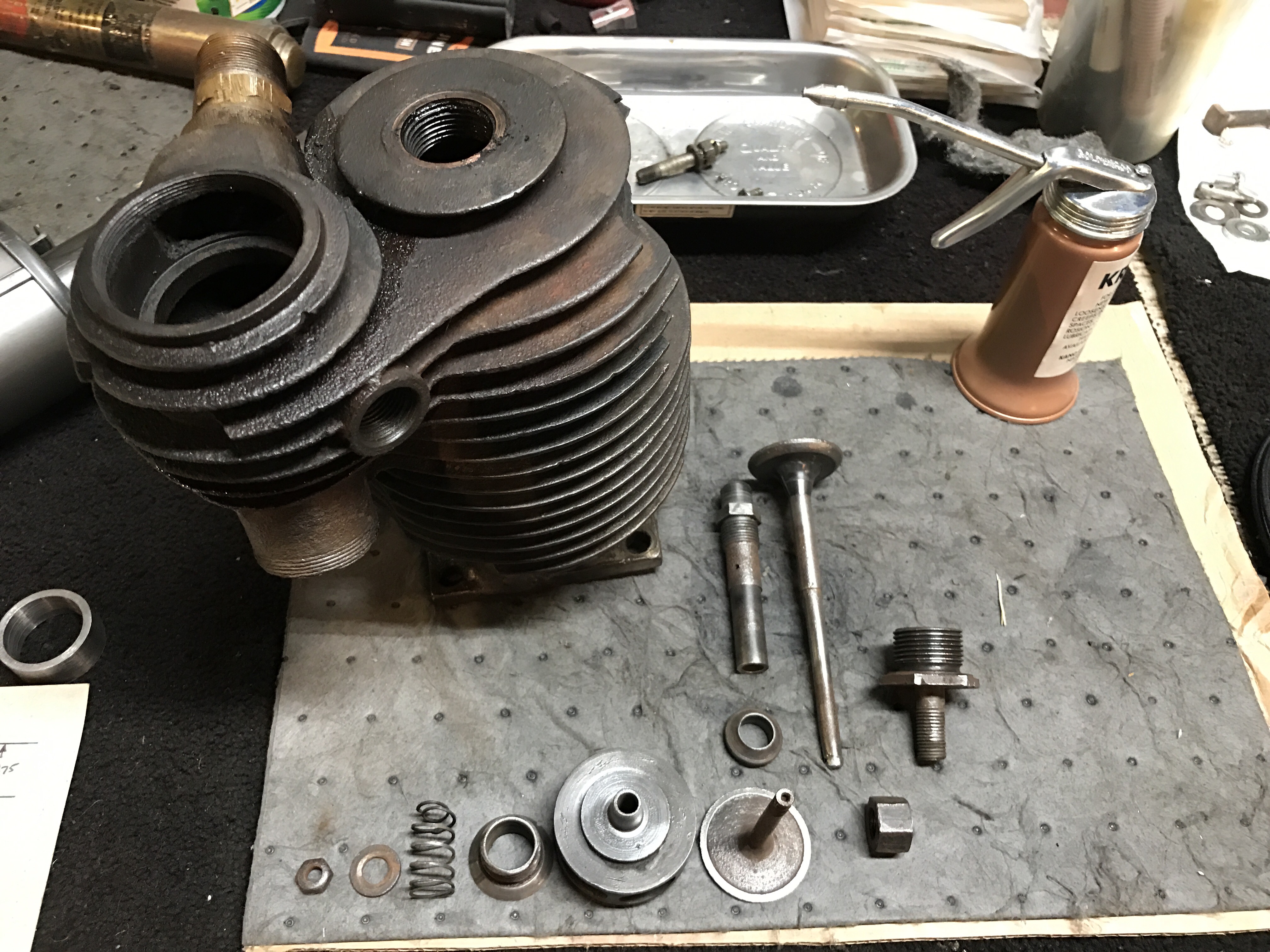 Time to get working on the one spare I have. Was able to remove the intake pocket intact. Then the exhaust valve could be removed. Next was the 100 year plus installed exhaust guide. Lots of kroil, time, heat, and patience led to the guide being removed unscathed. All going good.
