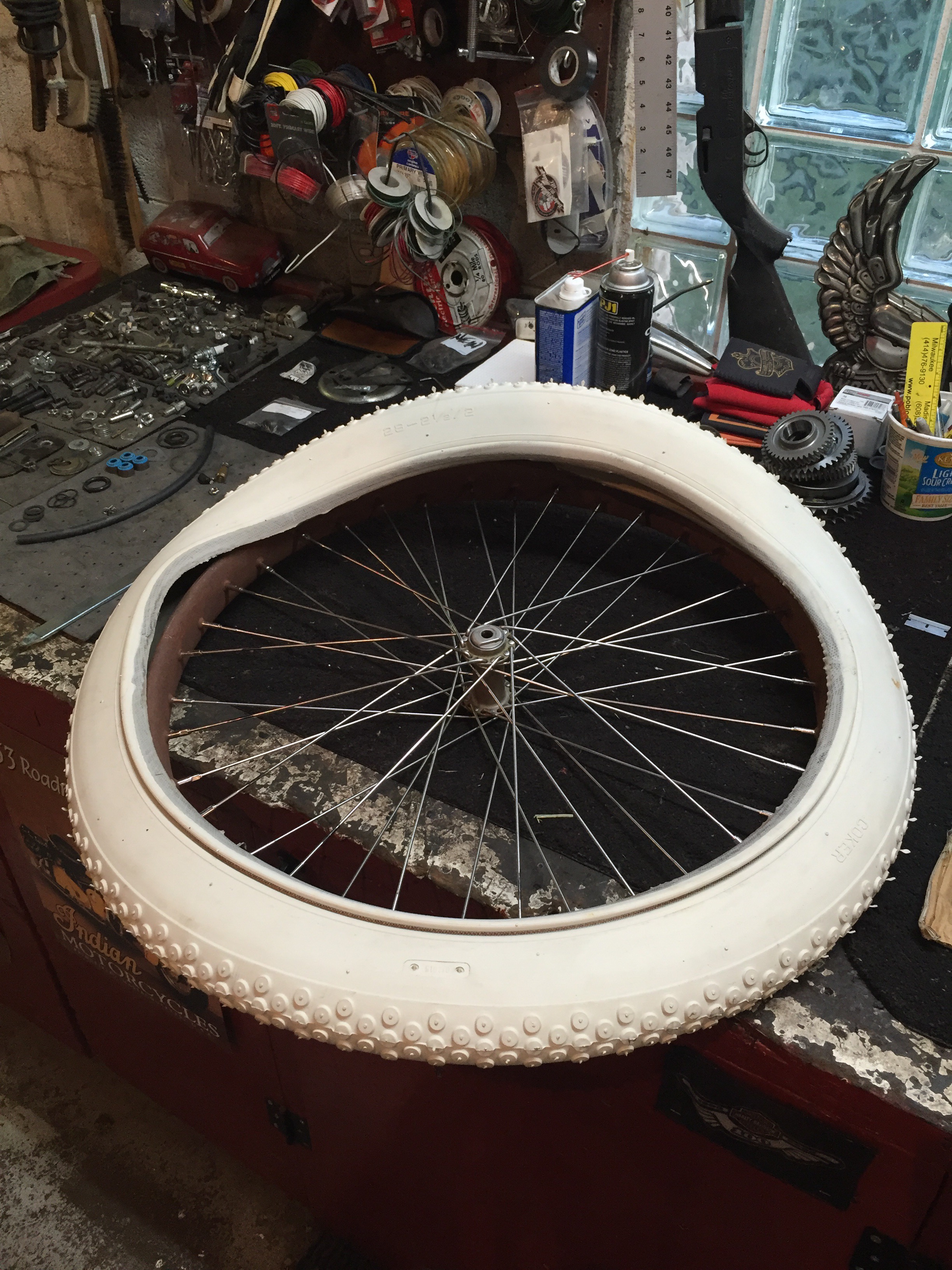 As my earlier post revealed, there is some machining required on my front end. A good friend owns Milwaukee Mold Industries and has agreed to tackle this for me. There are a number of machining events that will be taking place over the next few weeks: handlebar work, repairing the broken off top fork tube, machining new lower rocker studs, and machining the lower fork rockers to once again be in tolerance for studs and axle. I’m thrilled this is moving along. Thanks MMI!